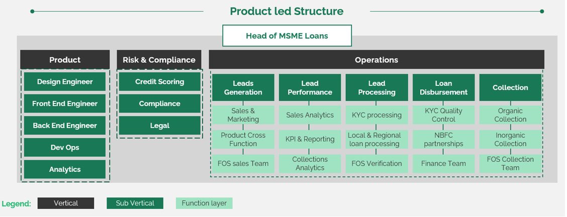 A product-led structure, where collections report directly to the product head (such as MSME loans), solves this issue for maturing startups. This structure fosters more ownership and communication between the collections team and the rest of the team, enabling product leads to spot trends and intervene quickly.